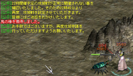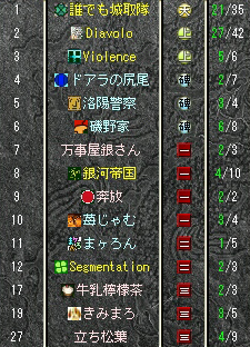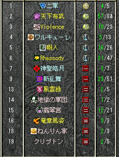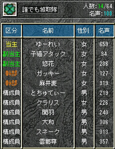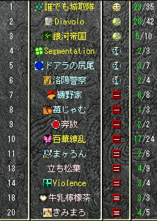 遅れましたが、イベ鯖の城日数について連絡帳で問い合わせたところ、同着1位だったが抽選でウチは漏れたという回答をいただきました。ウームム残念