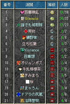 城持ち派閥の変動はありませんでしたが、攻城戦に参加する派閥が徐々に増えてきました